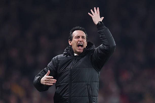 : Unai Emery, Manager of Aston Villa, reacts during the Premier League match between Arsenal and Aston Villa at Emirates Stadium on December 30, 2025 in London, England. (Photo by Julian Finney/Getty Images)